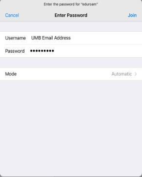 Your UMB email address and password.